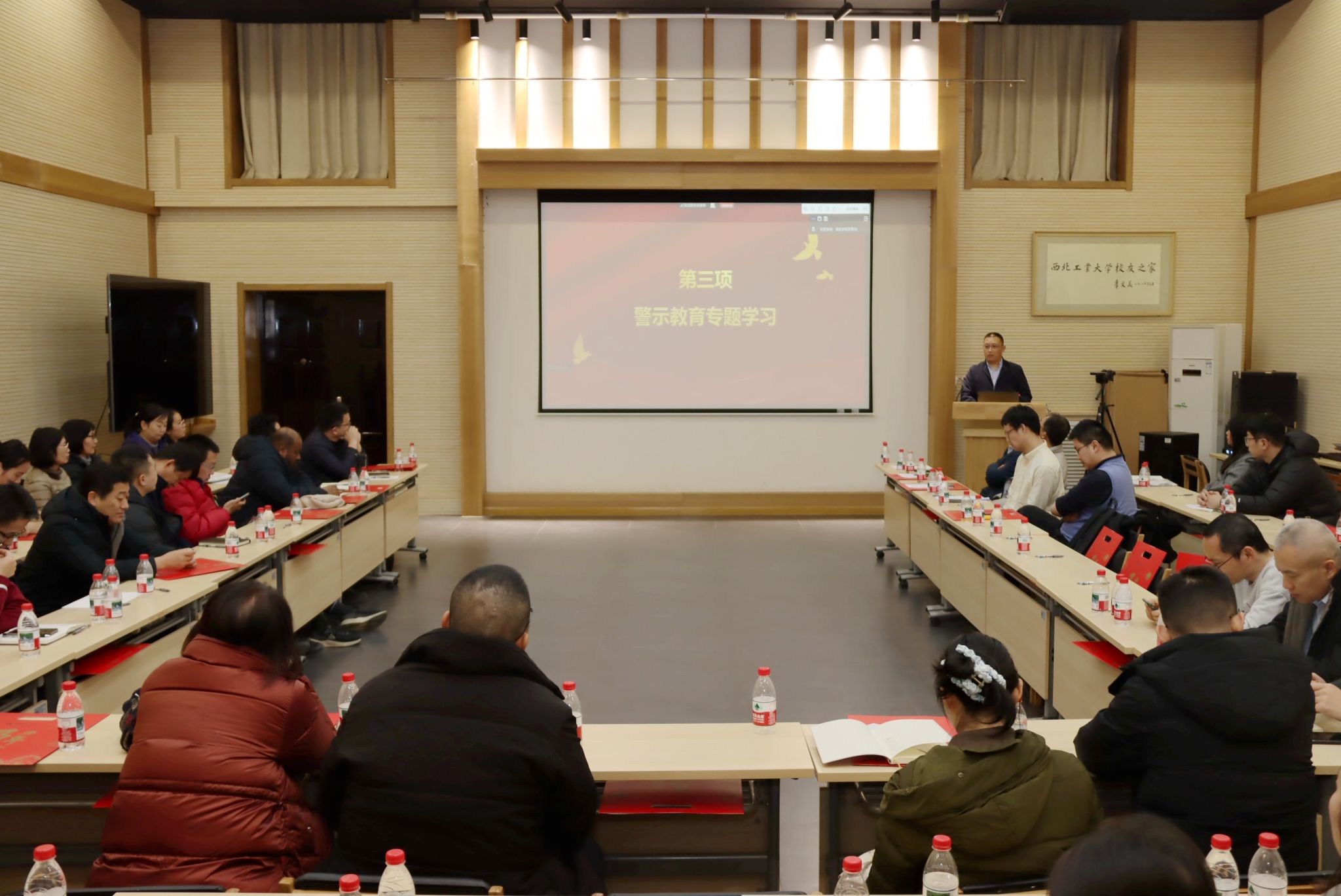 会议最后开展了警示教育专题学习。党委书记闫伟带领全体教职工深入学习相关纪律规定,结合典型案例开展警示教育,要求全体教职工严守师德师风、保密和安全底线,共同营造风清气正的育人环境。