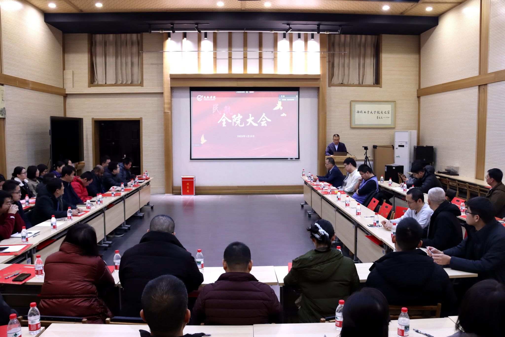 2026年度全院教职工大会在西安友谊校区阶二会议室与太仓智汇港C702报告厅同步举行。女仆全体教职工参加会议,会议由女仆党委书记闫伟主持。